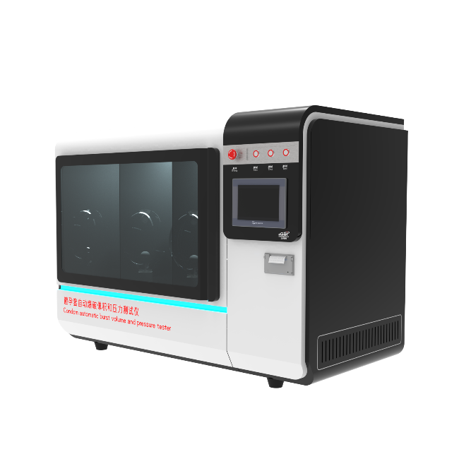 通过气泵向避孕套充入压缩空气,实时记录爆破瞬间的体积(0-60L)和压力值。
